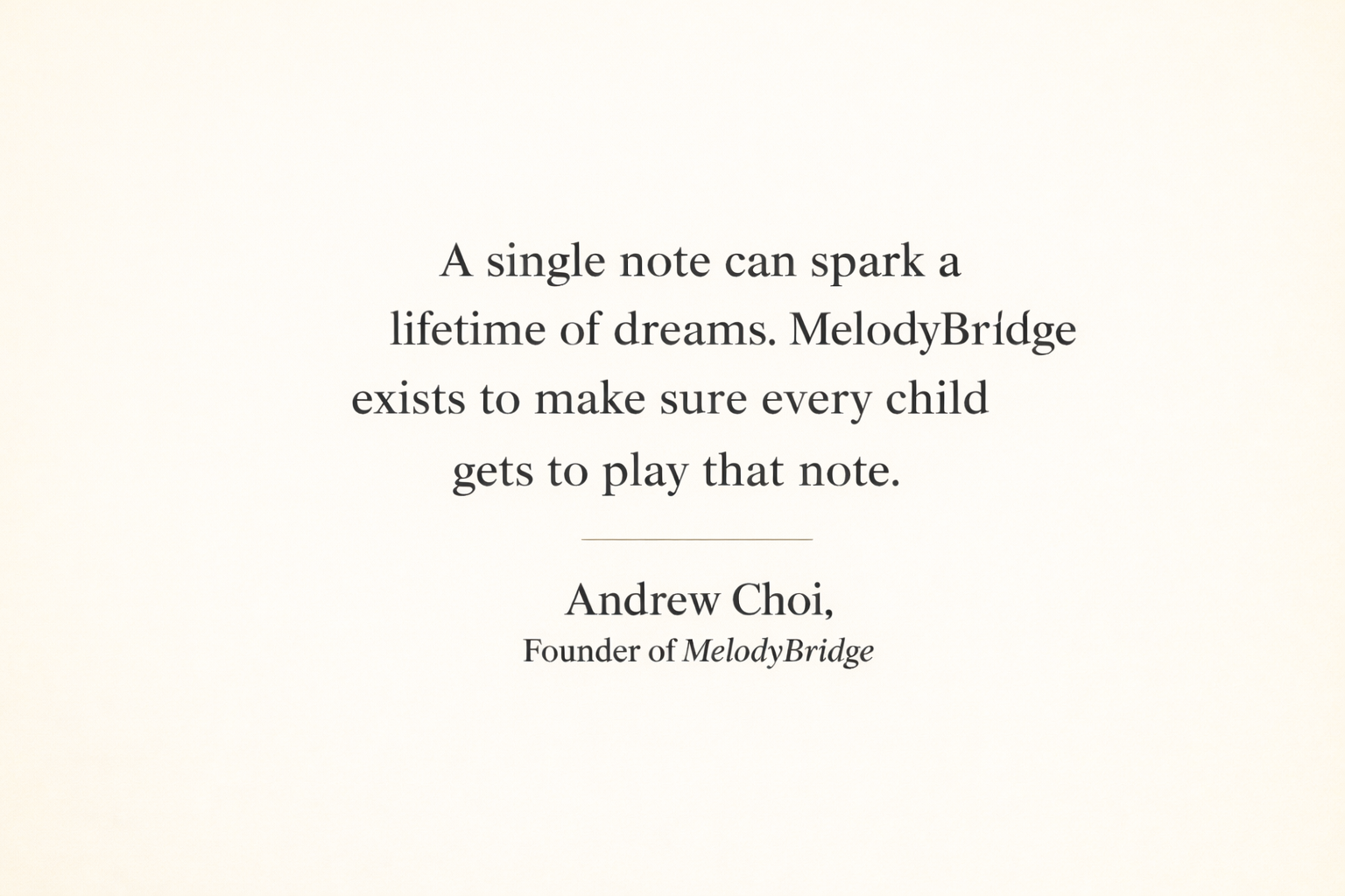 MelodyBridge is a 501(c)3 nonprofit organization dedicated to expanding access to music education for students who lack the financial resources to pursue it. We bridge the gap between talent and opportunity by helping students obtain musical instruments, lessons, and educational support—ensuring that financial barriers never silence potential.