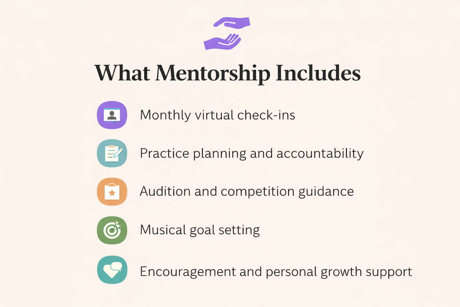 Through structured guidance, goal-setting, and regular check-ins, mentors help students build confidence, discipline, and long-term vision in their musical journey.